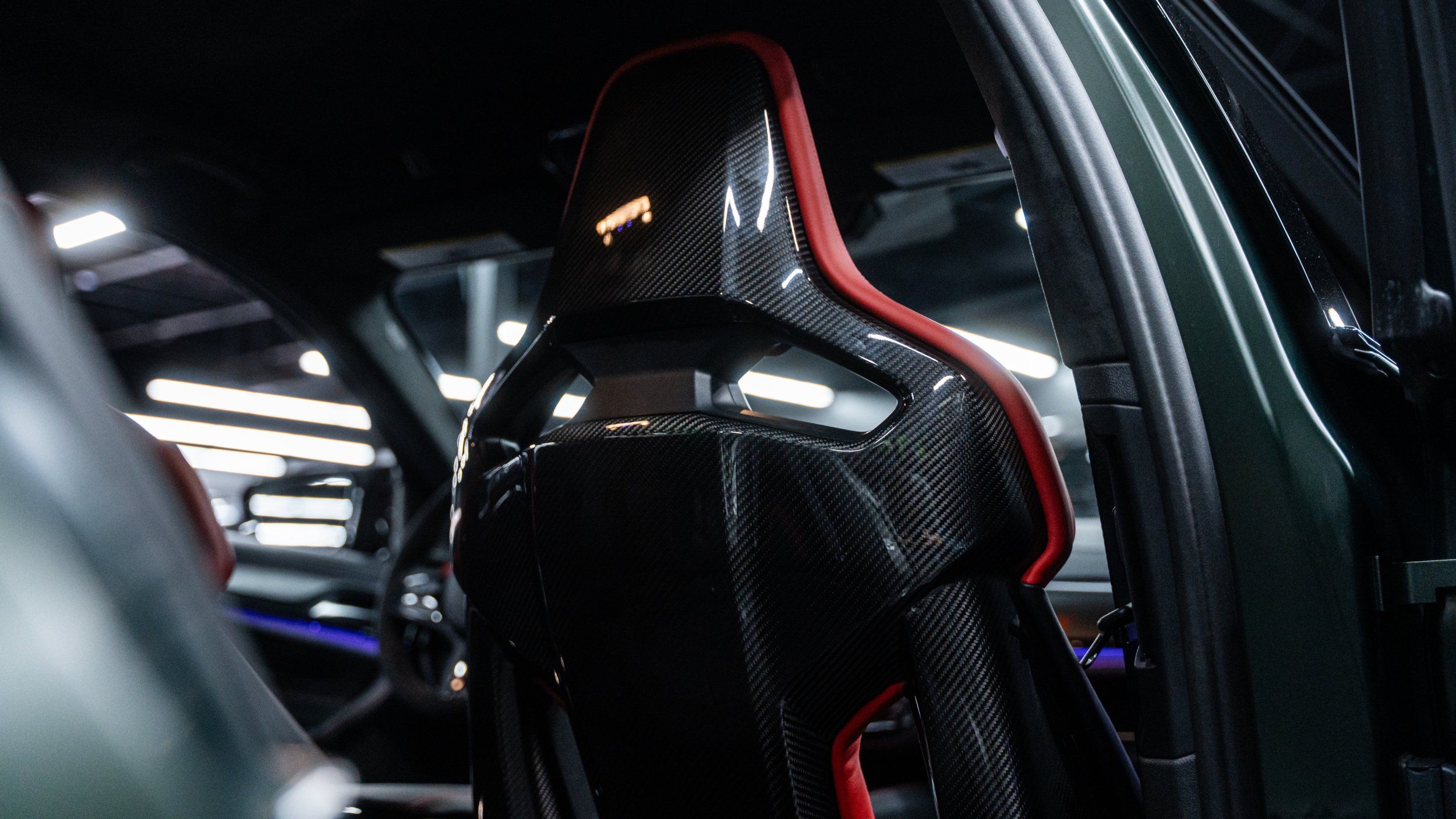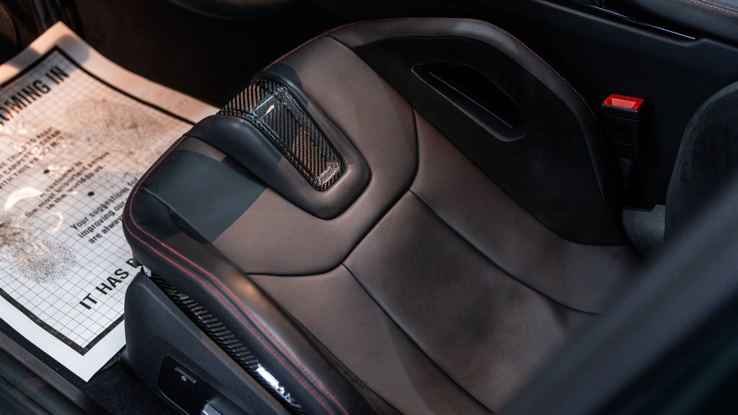 Front seatback upholstery: Carbon fiber front seatback upholstery